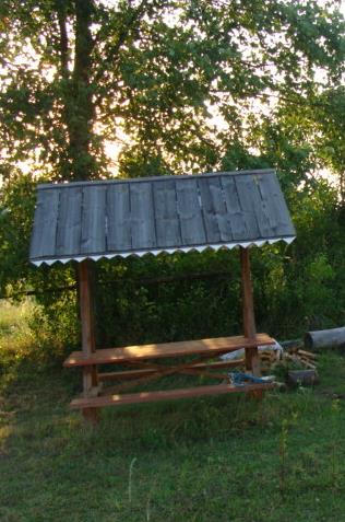 Jest też przyjemne miejsce na ognisko z ławeczką i zadaszonym stołem.
